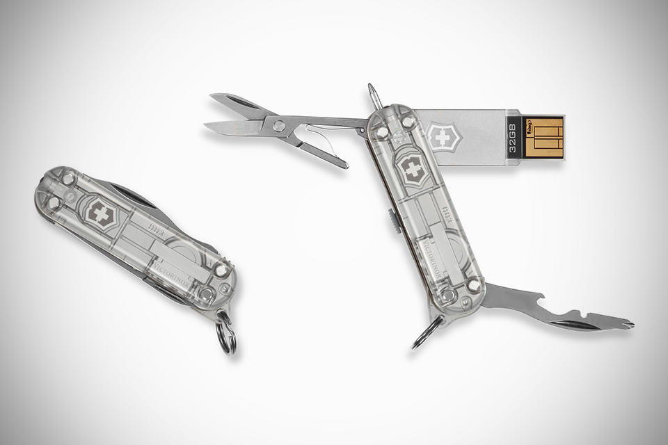 have you ever find yourself needing to pop open a bottle of cold, screw something (not a person, though), strip a wire or two or cut something and saving digital data securely all at the same time while flying? if the answer is yes, then the Victorinox Swiss Army Jetsetter Flash Drive is the go to multi-tool. available in three capacities: 8GB, 16GB and 32GB, each of these USB flash drive features a variety of implements including scissors, nail file with screwdriver, bottle opener, tweezers, key ring, ballpoint pen, wire stripper, LED mini light, depending on which model you go for. however, the highlight here isn’t the wee sized tools. this flight-friendly Swiss Army product features a detachable flash drive that’s preloaded with security software specifically tailored for Mac devices. the secure software allows you to encrypt files, securely store personal username and password information and surf the Web like a secret operatives, without leaving traces of your browsing history, files or cookies. the Victorinox Swiss Army Jetsetter Flash Drive is available now exclusively via Apple Online Store with prices as follows: $39.95 for the 8GB, $49.99 for the 16GB and $99.99 for the 32GB model. scroll down for a few more look.