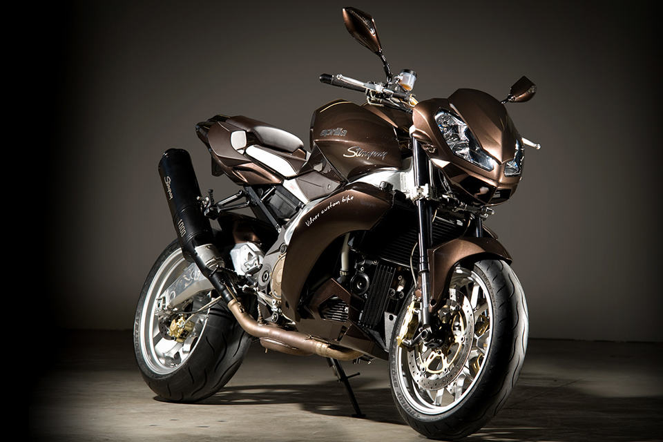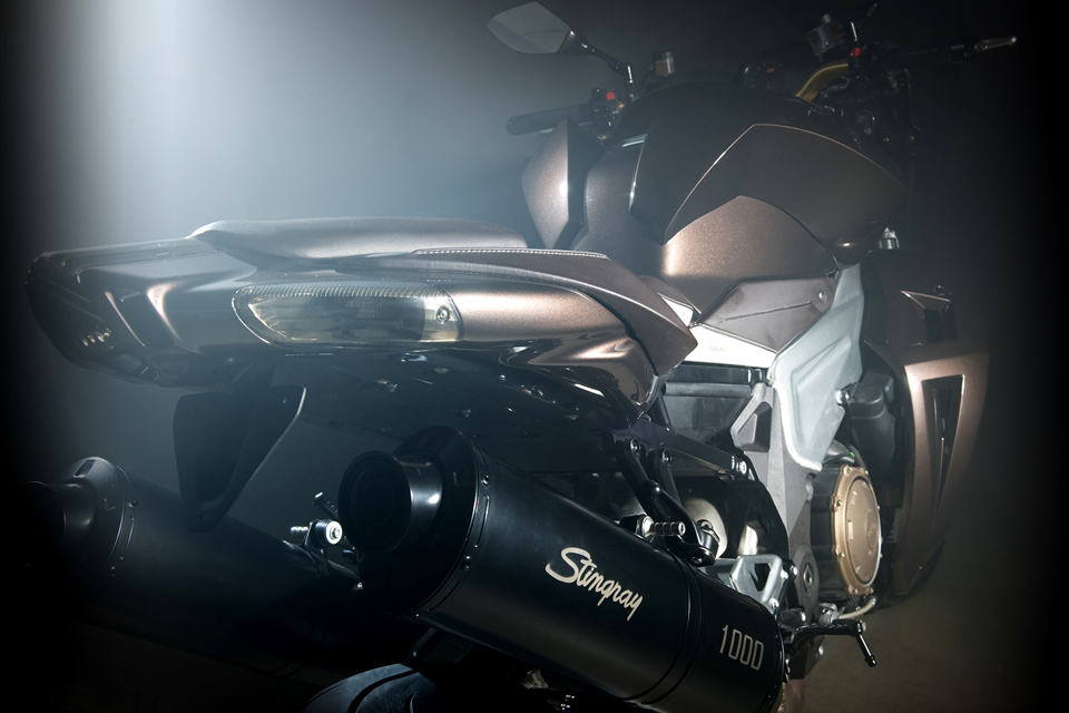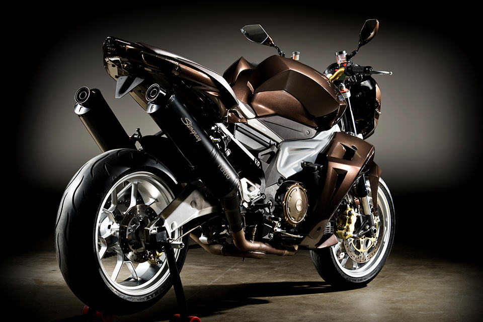 usually, the for an auto car interior customizer, the logical move is either to venture into yacht or aircraft customization but that norm does not applies to Bulgarian customizer, Vilner. they have taken a dip in customizing an iconic bike and this one-off project is Aprilia Tuono 1000R, reborn as a Vilner Aprilia Stingray custom motorcycle. and judging from their website, the Stingray is not the first and will not be the last of the two-wheeled beast we will see from Vilner. working with bike customizer Galaxy Custom, the Stingray received several enhancements including a longer body for improved stance, a brand new front fender, reworked headlamps (while retaining the original twin lamps), LED turn signals, all new side spoilers with dual vents for heat dissipation, tinted taillights, a futuristic redesigned fuel, black bike frame, spruced up wheels and last but not least, seat and the sides leading up the seat are reupholstered by the Bulgarian customizer. beauty is nothing without brawl and for that, the Vilner Aprilia Stingray Custom Motorcycle received a power bump by 10 percent to match its aggressively beautiful look. Vilner has not put a price tag to the Stingray to date and hence, it is also a mystery as to whether the Vilner Aprilia Stingray will be made available at all.