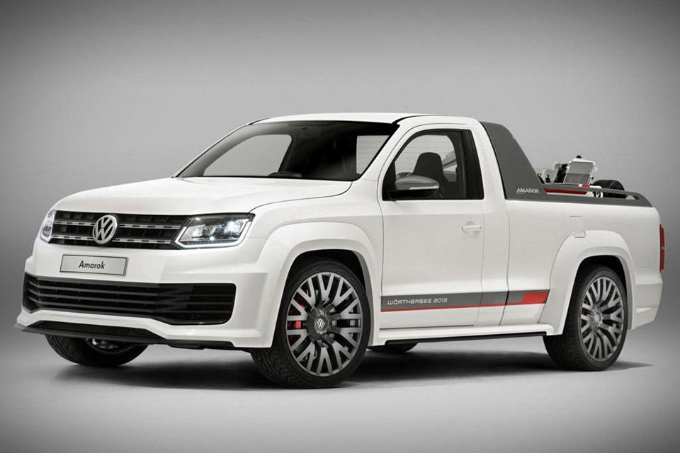 Volkswagen is hardly a brand that is known for pickup trucks, but they do make them anyway and it is called the Amarok. however, the version you see here is a souped up version, known as the Volkswagen Amarok R-Style Concept Pickup Truck which was unveiled at the 2013 Wörthersee Tour tuning event in Austria. the concept pickup truck features a uprated 3.0-liter V6 TDI turbodiesel that puts out 270 horsepower (about 201 kW) with 443 lb-ft (600 Nm) of torque on the tap, which afford this workhorse to rocket from zero to 100 km/h (62 mph) in under eight seconds. in case its improved performance is not immediately noticeable, it has the aesthetic to ensure that no one will mistake it for ‘just another Amarok’. these cosmetics include massive 22-inch alloy wheels, slammed suspension, a striking wide-body kit, a chunky sports bar across the back of the cab, LED headlamps, and generous amount of carbon fiber accents to boot. by the look of it, it is a truck that any truck aficionados will appreciate. since it is a concept, it will be anyone’s guess whether it will actually make it into production. so what do you think of this concept pickup truck? would it be a ride you would dig?
