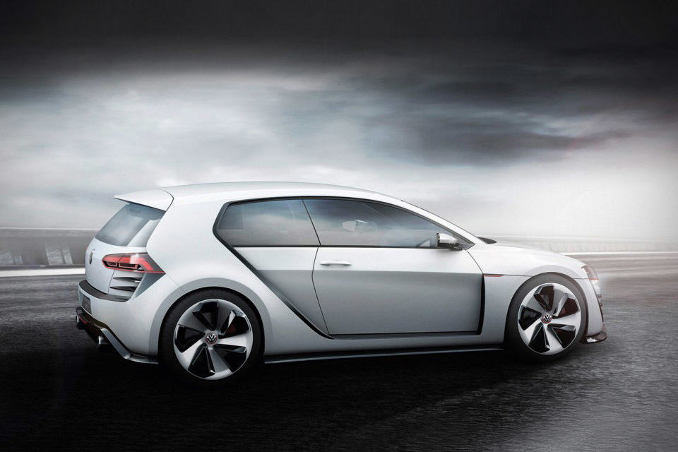 how to make a hot hatch even hotter? as per Volkswagen’s book that would be taking the 2015 Volkswagen GTI and slap it with a twin-turbo 3.0-liter V6 unit that has 503 PS (or about 496 hp) and 560 Nm (413 lb-ft) of torque on the tap. of course, that wouldn’t be all; standards include a seven-speed DSG dual-clutch gearbox that transmit that awesome power to the Haldex all-wheel-drive system, allowing this dream sub-500 hp hatch to make a century sprint in just 3.9 seconds and screaming its way to a maximum speed of 300 km/h (186 mph). and that, my friend, is what goes under the hood of the Volkswagen Design Vision GTI Racing Concept that made its world premiere at the 2013 Wörthersee Tour. to go with the ready-to-race package is a very Scirocco-on-steroid styling that features a pop-up C-pillars, a wider front and rear tracks, 20-inch alloy wheels (with covered wheel bolts, which is a very nice touch of sophistication), and wrapped in specially developed rubbers – 235/35 up front and 275/30 at the back.