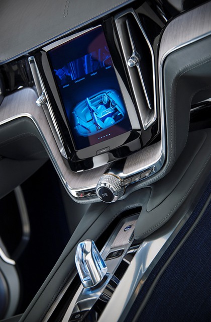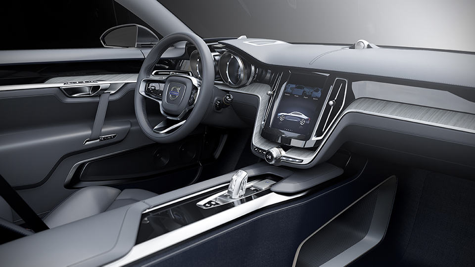 on the outside, the Volvo Concept Coupe is nothing less than a visual impact, assaulting our visual senses with low sculptured bonnet, rakish windshield, mega-sized 21″ wheels, a wide sporty stance, and a “floating” grille flanked by a pair of headlamps with new T-shaped DRL light guides (basically, daytime running lights). the last exterior feature is something that we are sure to see in further Volvo rides. the inside welcomes occupants with a future-meet-today design with handcrafted elements such as the leather instrument panel, naturally aged wood inlays, dark blue woven carpets, and an opulent touch of luxury in the form of a handcrafted crystal gear lever (yes. it is literally a crystal). unlike most cars and concepts, the Volvo Concept Coupe boldly includes a large portrait touchscreen, prominently located at the center console, that “interacts with an adaptive digital display and head-up display.” we don’t about your take on this. in all honesty, the Volvo Concept Coupe is not a ride that would result in us drooling uncontrollably, but nevertheless a head turner and an exciting development for the car of near future.