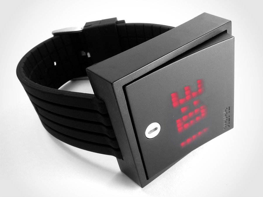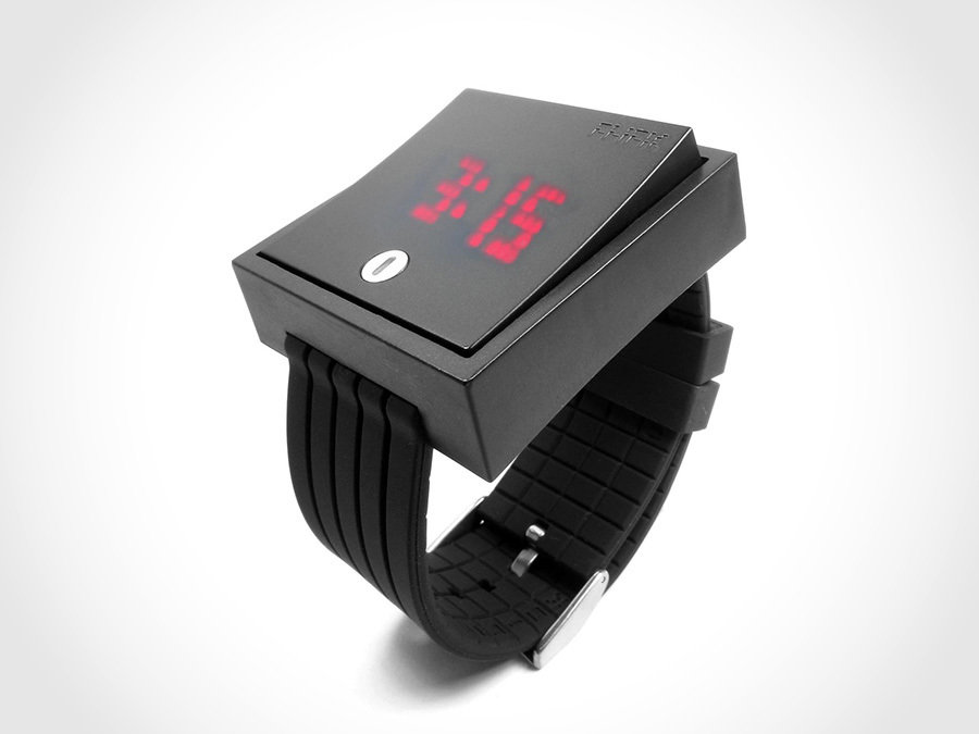 there are three types of watches that will have our immediate attention: luxurious, beautiful and novel. the Wall Switch Click Watch is one of such example that belongs to the latter category. as the name implies, the watch has a flat wall switch design and flipping it up or down enables the user to see the time and date, which are precede by a short but cool dot-matrix LED animation. the coolest part is, the display remains hidden the rest of the time until you flip the switch to illuminate the time from below. hey, if you ever going to wear a watch, why not do it with a potential conversational piece like the Wall Switch Click Watch? it’s available in four colorways and cost just $99.99 a pop. hit the jump for a few closer look and a short clip of the watch in action.