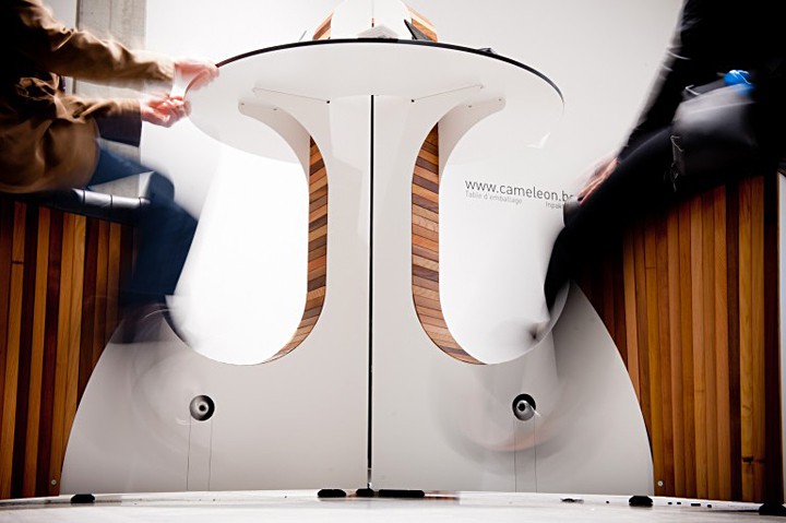 getting regular exercises and still keeping up with your busy work schedule is next to impossible for most of us. instead of trying to stretch your time to hit the gym, you could make better use of your desk bound time to exercise and generates some useful electricity to juice up your power-hungry gadgets at the same time. sounds like a fantasy? not at all cos’ that’s exactly what Belgium-based firm WeWatt has done. it has created the WeBike, a round desk that has three seats with pedals, allowing each seated user to cycle as he or she works and generates around 230Vac / 30Watt of electrical output. constructed from a combination of aluminum, steel, reclaimed cedar and reclaimed leather, it has a high pressure laminated table top and features an interactive LED ring display in front of each seat, giving a visual indication of the amount of power being generated and the available AC power for charging your devices. the good news is, this is not a concept and it can be bought for €9,950 or about US$13,050 each. sounds like the best of three worlds: work space, exercise and generating green energy. what’s not to love?