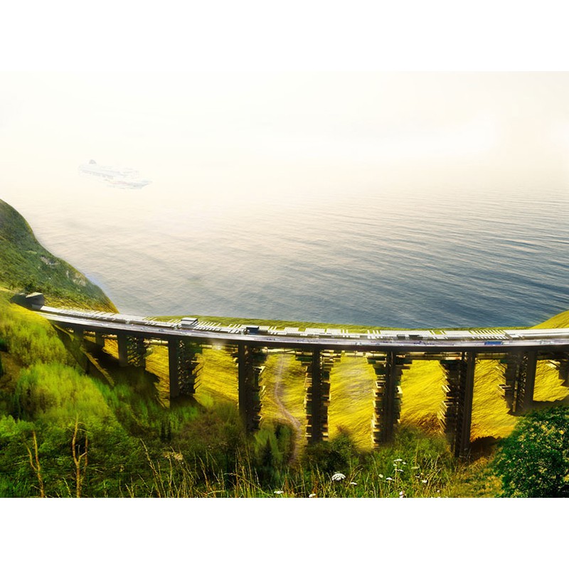 in the future, earth’s habitable places will be overcrowded and it is imperative that mankind starts dreaming up of ways to contain the burgeoning population. we can’t go on and flatten our mountain reserves for our selfish purpose of habitation, so why not start from under the bridges? at least that’s what one beautiful winning concept submitted by Off Architecture, PR Architects and Samuel Nageotte for the ‘Solar Park South‘ online competition proposed to do. though, not so much for increasing dwelling but more for maximization and sustainability. Solar Park South aims to find ideas for a sustainable redevelopment of the Salerno-Reggio Calabria highway sections between Scilla and Bagnara in Calabria, Italy.