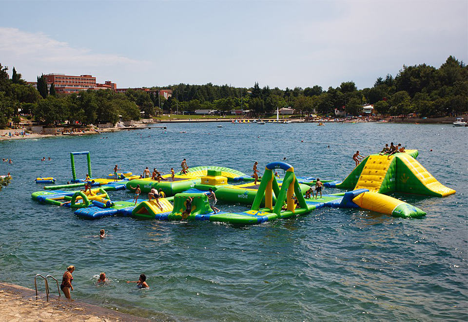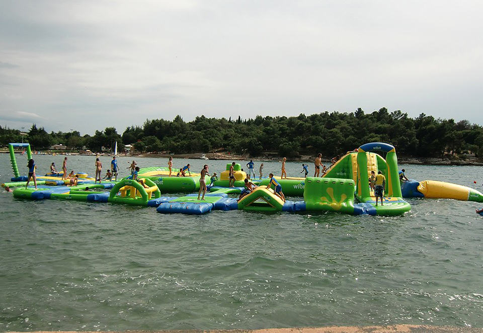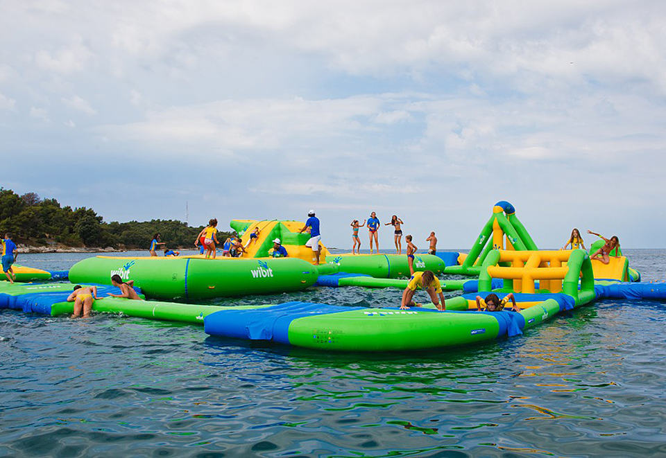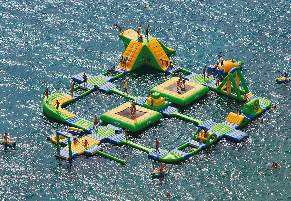 this is the first time we are going to say that setting up a water theme park is probably easier than building a playground from ground up. if you have a private lake or island, the Wibit Sports Park 60 is for you. however, don’t expect thrill rides like The Log or anything remotely close. instead, this inflatable floating water park will offer you a slide, ponds, a cliff, high jump, a pair of trampolines, a swing, balance beams, ‘ActionTower’ and a podium area to crown the eventual winner, if there’s a competition in placed – all contained within a massive floating structure that measures 131′ by 105′ (40m x 32m) and weighs a hefty 1,804 kg (3968 lbs) when not inflated. it’s obvious hand pump is not going to inflate this huge water theme park, instead it comes with seven electric pumps to inflate it into an operational structure in just three hours and it requires a minimum water depth of just 8.2′ (2.5m), which should allow it to be placed close enough to the shoreline. however, how you are going get your guests, including the little ones, from the shore to the Wibit Sports Park 60 is entirely up to you. for a yet to be confirmed pricing, you will get the Wibit Sports Park 60 with 19 fun-filled structures, 18 safety buoys to mark your water park perimeter and 14 anchor bungee to keep your structure from drifting away.