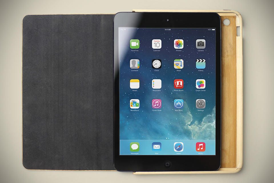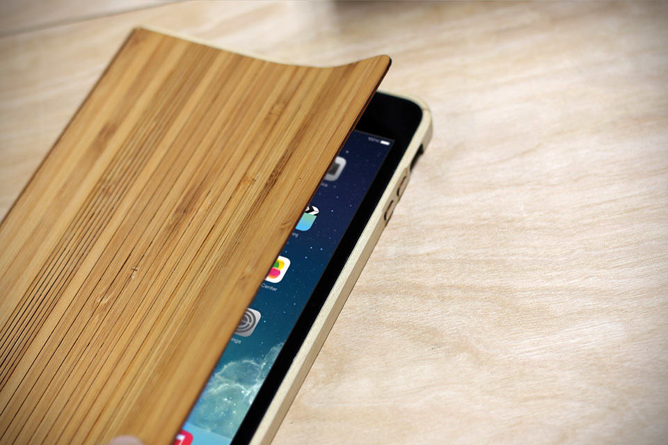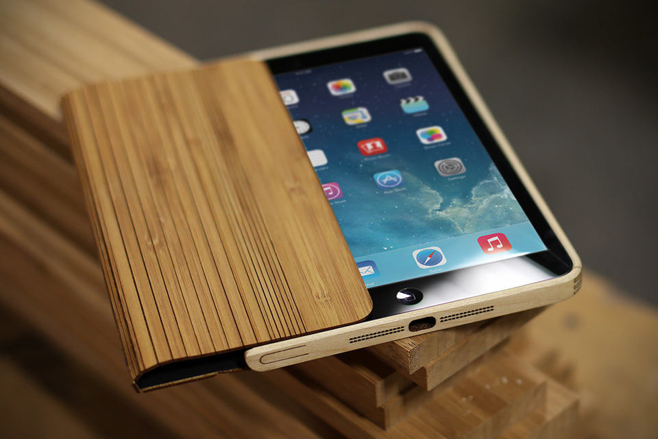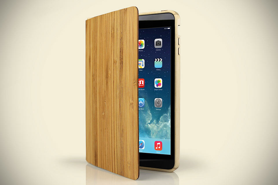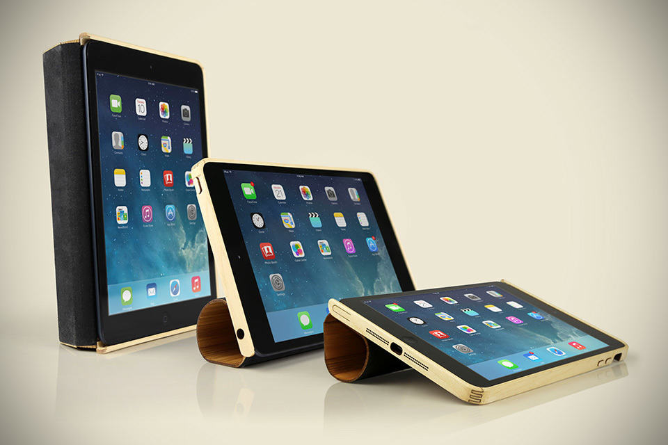 just hours after the unveiling of the new iPads, Grove is already offering the Wood Smart Case for both the iPad Air and iPad mini with Retina Display. as with Grove’s tradition, the Wood Smart Case for iPad Air and iPad mini is handcrafted from lightweight (and sustainable) bamboo and sturdy Eastern Hardrock Maple and is designed to work as a smart cover for automatically waking or putting the device to sleep when the cover is opened and closed, and the flexible design of the cover also allows it to double as a stand offering three standing (propping?) positions for your Apple tablets. the frame itself is of maple, while the rad ‘smart cover’ is a product of bamboo with integrated strong rare-earth magnets.