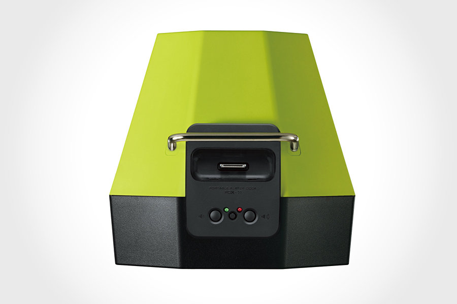 we realize the fact that we are assaulted by an ocean of sound docks but this particular tough ball from Yamaha deserves some mentioning. unlike most sound docks out there, the Yamaha PDX-11 Sound Dock is designed to be totally portable and fits right into tight spaces like a book shelf when you are at home. designed with a 30-pin dock connector for your small iDevices, it is equipped with a single 4-inch cone woofer and a 1-3/8-inch tweeter, a stereo 3.5mm audio jack catering to non-iDevices and can be powered either by a wall outlet or six numbers of AA alkaline batteries. the latter offers about 8 hours of playback and its 3.3 lbs (1.5 kg) mass, together with the conveniently located stainless handle should allow ease of portability to any party that you desire. despite its compact stature, it does come bundled with a remote for hassle free operation. available in four hues, including black, blue, green and white, the Yamaha PDX-11 Sound Dock carries a retail price of $99.95. hit past the jump for a gallery of the Yamaha PDX-11 Sound Dock.