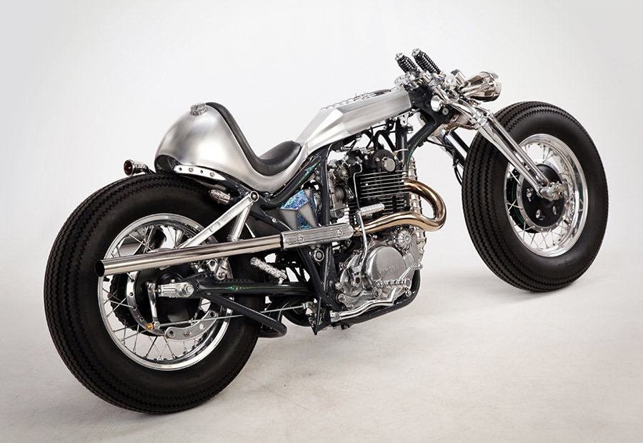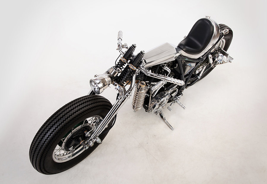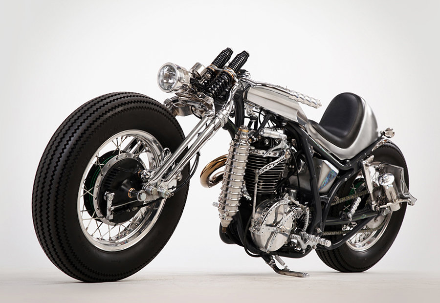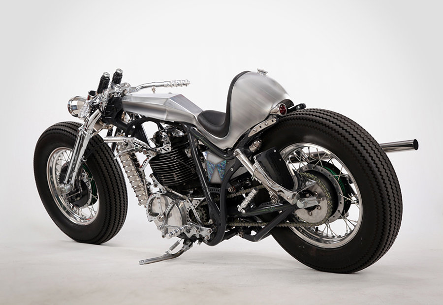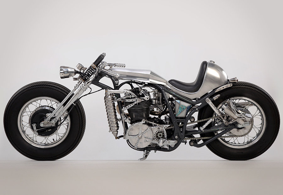 as much as we love the muscular lines of factory sport bikes like the Ducati Streetfighter, our hearts are still with custom two wheelers. in fact, customization is the thing that tickles our sense which is what the Yamaha SR400 Custom “Clock Work” did. custom by Japanese custom bike builder, Motor Rock, the first you will notice about this handsome example is its brush chrome finish and an overall aesthetic that’s very unlike its original form. its single cylinder engine now sports a 89mm piston and 92mm stroke crankshaft, matched to a high performance Keihin CR Carburetor and classic K&N air filter. other features include a set of 74 Springer/Processing front fork, one-off handlebars, Dakota digital meter, EASYRIDERS billet rear suspension, and one-off tail light. it rides on huge 16-inch wheel up front and XS650 wheel at the rear, both in matching chrome finishes.